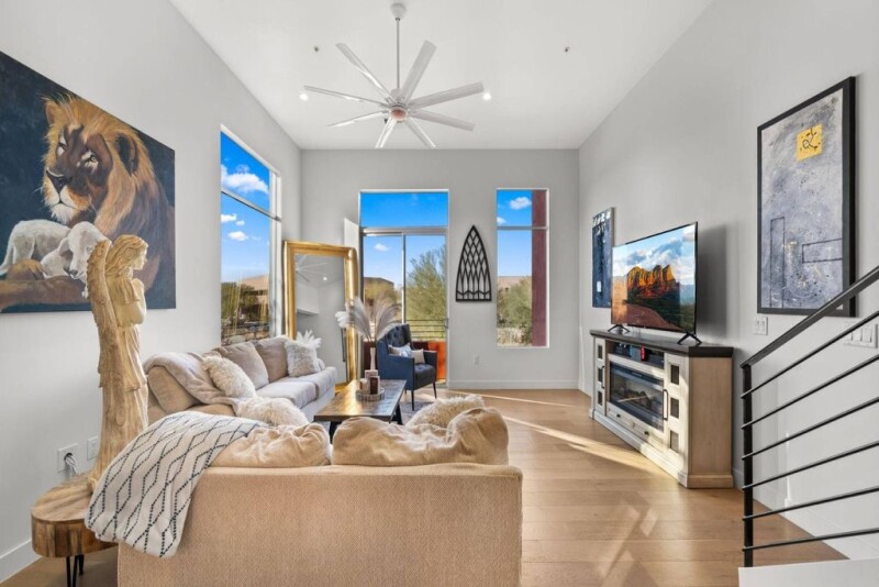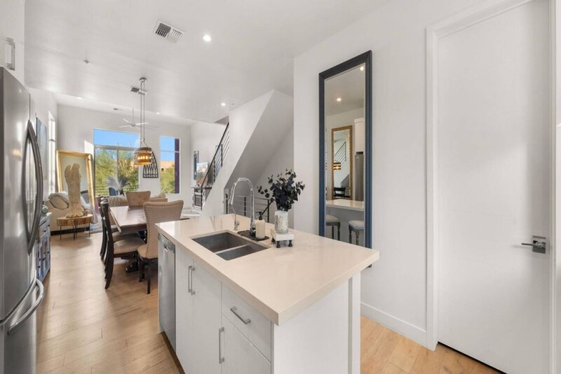 Experience refined luxury in this stunning townhome, popular (corner unit) with a rooftop deck, located in the coveted SOHO Scottsdale community. Designed by the acclaimed architect Bing Hu. SoHo offers an elegant fusion of work and living spaces in a dynamic, dual-zoned layout. With nearly 2,400 square feet of sophisticated living space, this home features exquisite finishes, two master suites, and a spacious home office. Thoughtfully appointed with Kohler water sense fixtures, smart home capabilities, and Gigablast internet, every detail is crafted for modern convenience. The attached two-car garage with storage adds further ease to this exceptional living experience. Situated in an unbeatable location, you're moments away from premier shopping, dining, & North Scottsdale entertainment.
