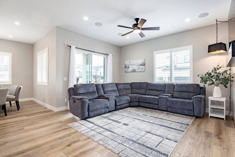 Meticulously designed with thoughtful upgrades, this corner lot home in a gated community offers enhanced privacy, scenic views, and rare additional parking-including a 14' x 63' RV pad with two 50-amp outlets. Step inside to 10' ceilings and an open-concept layout with a main-level primary suite featuring a spacious walk-in closet and custom built-ins. Upstairs features a second family room, and covered deck. Enjoy seamless indoor-outdoor living with a covered deck, a louvered pergola, built-in fountain, and xeriscaped backyard with pavers, turf, and a 12' x 12' storage shed. The fully fenced yard features a drip system, photocell landscape lighting, and outlets for holiday lights. Interior upgrades include premium flooring, solid core doors, Control4 smart home system, built-in speakers, and enhanced lighting. The chef's kitchen boasts a 36" professional range, KitchenAid appliances, a Miele dishwasher, and a built-in china cabinet. Bathrooms feature floor-to-ceiling tile with raised shower heads, and ceiling fans are found throughout. Comfort meets efficiency with a tankless water heater, water softener, RO system, dual HVAC units, prewired EV charging, and a 4-camera security system. Smurf tubes connect to a central electronics closet. The basement, with 9' ceilings and upgraded windows, is plumbed for a future kitchen, bathroom, laundry, and designed for three additional bedrooms and a family room. The clubhouse features an outdoor pool, hot tub, fitness room, large family room, kitchen, and a covered BBQ area. Take in mountain views from your transom windows or relax on the covered front porch-this home has it all.