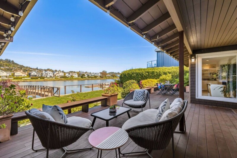 Situated in the coveted Larkspur Marina neighborhood on a sun-drenched lot is this updated ranch style home with a Cape Cod feel. This residence offers the California lifestyle only dreamed about with waterfront living and a private deep water boat dock with access to the San Francisco Bay. From the moment you arrive, you'll be welcomed by beautifully landscaped grounds and a sunny, south-facing patio, framed by unobstructed views of Mount Tamalpais. The formal foyer opens into an airy living space with Corte Madera Creek views. The living room includes an elegant fireplace and double doors for privacy, while the formal dining room boasts large skylights. The kitchen features granite countertops, stainless steel appliances, and ample cabinetry. The family room has a wood-burning fireplace and connects to a large deck surrounded by a thriving garden. Step down to a lush and level lawn area, a unique and desirable feature on the Creek. The opposite wing includes three bedrooms and two bathrooms, with a primary suite offering water views. Conveniently close to downtown Larkspur, top-rated schools, dining, and hiking/biking trails. Live the resort lifestyle in this waterfront paradise!.