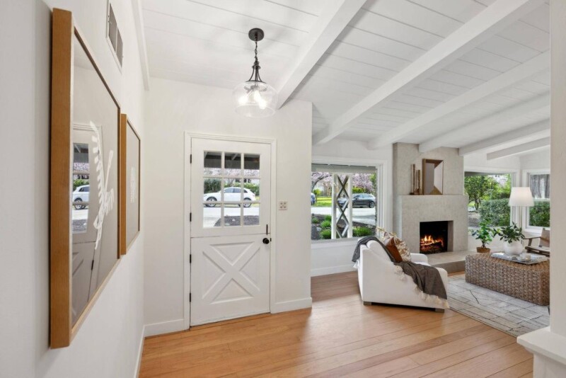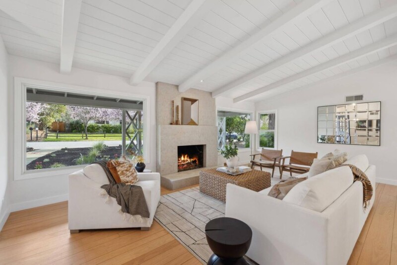 Tucked away on a peaceful, cherry blossom-lined cul-de-sac in the highly sought-after Sleepy Hollow neighborhood, this charming single-level home rests on a flat 0.44-acre lot. Designed for outdoor living, the property offers views of the green, rolling hills of the Sleepy Hollow Open Space Preserve — creating an idyllic backdrop in this picturesque setting. A curved walkway guides you to an extended, covered front patio, setting the tone for the welcoming interior. Inside, a striking fireplace with a sleek concrete surround takes center stage in the bright living room, where large windows and a vaulted ceiling amplify the natural light. The open-concept dining area opens into the expansive backyard through French doors, creating effortless flow to the sun-soaked outdoor space. The kitchen, perfectly positioned to capture views of the stunning rear yard, features elegant quartz countertops, ample cabinetry, and a cozy breakfast nook with a built-in bench and picture window — ideal for savoring morning coffee or casual meals. The private west-facing patio surrounded by vibrant greenery and majestic redwoods invites al fresco dining beneath the pergola, and the sprawling lawn make the perfect setting for outdoor entertaining. This home boasts three bedrooms, including a primary suite with direct backyard access. Two additional bedrooms share a beautifully appointed hall bath with a tub-shower combination. Additional highlights include a conveniently located laundry room off the kitchen and a two-car garage. With its prime Sleepy Hollow location, spacious lot, stunning natural surroundings, seamless indoor-outdoor flow, and close proximity to top-rated schools, downtown, and hiking trails, this home is a true gem not to be missed!.