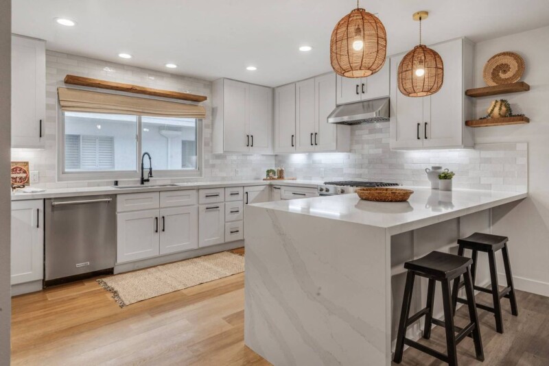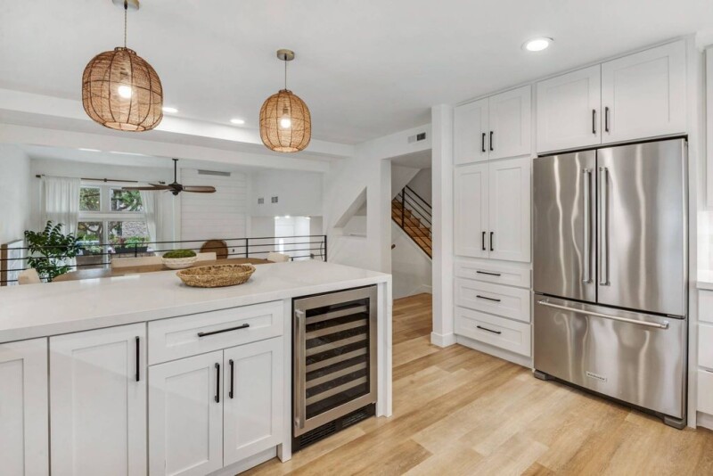 Located on an ultra quiet cul-de-sac street in the heart of Silicon Beach, this beautifully renovated, street-facing townhome awaits! Upon entering, this light andbright unit immediately shows off a wonderful living room with high ceilings, a cozy fireplace, and direct access to a spacious private patio. The entertainer’skitchen and dining area flawlessly round out the downstairs living area with high-end stainless steel appliances, subway tile backsplash, custom cabinetry, quartzcounter tops, and a oversized “peninsula” countertop with bar seating that serves as the perfect place for social interactions. Downstairs also has a powderbathroom with laundry subtly tucked away behind retractable doors. Heading upstairs, you will find three large bedrooms and two bathrooms. It doesn’t matterwhat time of day it is, if the sun is up, the primary suite, with its vaulted ceiling, many windows, and private patio, is flooded with natural light. The primarybathroom offers a spa-like experience with a double vanity and an inviting walk-in shower. The other two bedrooms come with a custom build Murphy bed andtasteful wainscoting, respectively. The hallway bathroom has a bathtub, high end fixtures, and beautiful tile work. Be sure to walk downstairs to the attachedprivate 2-car garage complete with a surprisingly large storage area. Villa Sicilia amenities include a pool and sauna. Close to all the shops and restaurants theMarina has to offer. Act quick! This one won’t last!.