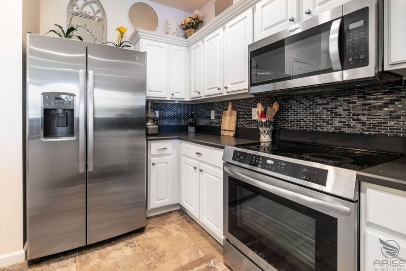 Embrace the tranquility of breathtaking lake views from both the living room and primary suite, creating a serene retreat within this elegantly upgraded three-bedroom, three-bathroom townhome. Nestled in a no-flood zone, this home offers a harmonious blend of style, comfort, and peace of mind. Located in a pet-friendly community, residents enjoy picturesque, traffic-free bike and walking trails, a beautifully maintained swimming pool, and a charming playground. Just six miles from pristine beaches and the vibrant energy of downtown, this residence seamlessly combines convenience with natural beauty. A cathedral-style screened lanai overlooks a lush, park-like setting and a shimmering lake, providing an idyllic space for relaxation or entertaining. Inside, an open-concept layout is enhanced by soaring 9.5-foot ceilings, creating an airy and inviting atmosphere. The lower level features newly installed marble-look ceramic tiles, offering a luxurious yet durable finish. The thoughtfully designed gourmet kitchen boasts state-of-the-art stainless-steel appliances, including a high-end stove, refrigerator, and microwave, as well as an under-sink water filtration system and a stylish peninsula island with bar-height seating. Upstairs, newly installed Berber carpeting leads to three spacious bedrooms. The primary suite showcases sweeping lake views, a generous walk-in closet, and a spa-inspired ensuite bathroom with dual sinks and a walk-in shower. A well-appointed guest bathroom features a tub-shower combination and an elegant vanity area. Additional conveniences include a full-size washer and dryer on the second level, a one-car garage with extra storage, and hurricane shutters for added security. Recent enhancements include a newly upgraded HVAC system with a UV light air purifier and air scrubber for superior indoor air quality, along with freshly painted interiors. Looking ahead, upcoming improvements in 2025 include fresh exterior paint, along with fully funded new siding and a roof installation. Positioned at the end of a quiet cul-de-sac, this home offers an extra layer of privacy while providing ample guest parking. The low HOA fee includes access to the beautifully upgraded community pool, ensuring a resort-like lifestyle. Move-in ready with modern upgrades and a prime location, this exceptional townhome is a rare opportunity to experience both luxury and peace of mind.