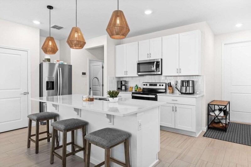 This 3 bed/ 2.5 bath end unit townhome is turn-key and one of a kind in this community! Built in 2024, and over $30k+ worth of upgrades have been added! This townhome has a 2-car garage with epoxy flooring, and a driveway big enough for multiple cars. You need to see it to truly appreciate the thoughtful, creative, and custom finishes this home contains. Renovations include laminate flooring on the stairs and throughout the second floor. The entire house was repainted (ceilings are flat white, walls are Alabaster - Satin finish). These walls are very easy to clean, perfect for any spills. This kitchen includes white shaker cabinets and white quartz countertops! Pendant lighting, and a marble backsplash bring this kitchen together.