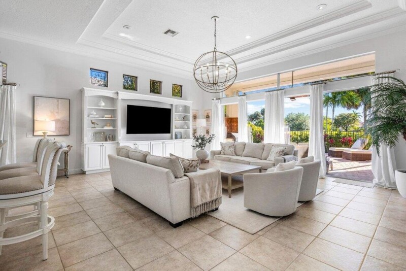 This magnificent 3bdrm/3bath golf home in Mizner Country Club with a 2.5 car garage is being sold FULLY FURNISHED/TURNKEY. The great room floor plan features a grand foyer with coffered ceiling, & a split bedroom layout. The large primary bedroom has lanai access, double walk-in closets, a spa-like ensuite bath with dual vanities, a jacuzzi tub, & separate shower. All bedrooms have hardwood floors. The kitchen is made for entertaining with SS appliances, granite countertops & pantry. High ceilings, 8' doors, & built in's with murphy bed in office/ 3rd bedroom. Relax by the beautiful free-form pool, enjoy the summer kitchen with motorized screen enclosure & take in the the serene golf course views. With storm shutters & impact front door, the home provides both style & peace of mind.