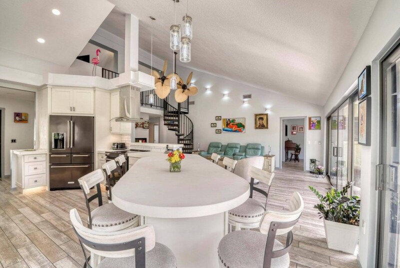 This exquisitely fully renovated Ridge at the Bluffs home has it ALL. The closest proximity to the beach for the Ridge community and an expansive view of the Ridge Preserve to the west is stunning (nothing is behind the home). Backyard big enough for a pool. Community activities include Pickleball, Tennis, Basketball, with community, pool and Jacuzzi.The open concept floor plan is bright and spacious with coastal design aesthetics fit for Jupiter. The open kitchen has been expanded for extra chef space and has a unique 8 person dining bar. The main living space is flooded with natural light from floor to ceiling sliders and is open to a comfy den/office with pocket doors for privacy. Iron spiral stairs takes you up to the open, finished loft, currently being used as a pilates room.