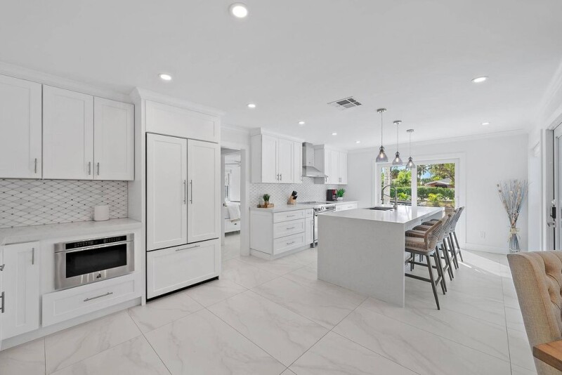 Enjoy the best of Jupiter living! This beautiful 3BR 2BA home just finished a total remodel. Situated on 85ft of water, this home is a boater's dream. Step inside to a light and bright, open-concept living space featuring high-end finishes, tile floors and a sleek modern design. The gourmet kitchen is the highlight of the home with top-of-the-line appliances, custom cabinetry, and quartz countertops. The finished garage has ample room for your cars and storage. Outside, the resort-style backyard is your private oasis--enjoy the newly resurfaced pool, a tiki hut for relaxing, and a private dock with a 12K pound boat lift, providing easy access to the Loxahatchee River and the ocean. Impact windows throughout! Don't miss this opportunity to own a waterfront slice of paradise!.
