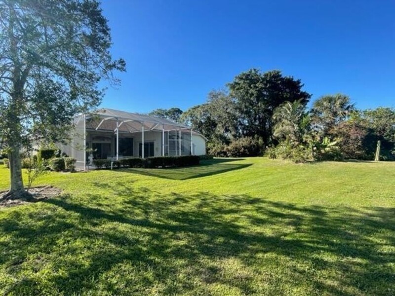 Beautiful Ballantrae POOL home. Location, location! Large corner golf course lot boasts beautiful gardens, golf & lake views, and unmatched privacy at end of the street. Spacious, open and bright home boasts 3 large Bedrooms, 3 full Bathrooms, plus living and dining areas and flex space Den/Office/or 4th bedroom. Multiple sliders open to outdoor living with large screened lanai, Pool and Spa. Updates include newer ROOF, granite kitchen counters, SS appliances and plantation shutters. 2.5 car garage with side golf cart door and direct access onto the course. HOA includes irrigation, 24 hour manned-gate, internet, and cable. Golf, tennis, pickleball, clubhouse and boat slips at marina are optional. Close to beaches and shopping. Ready now for immediate close - start enjoying the good life.