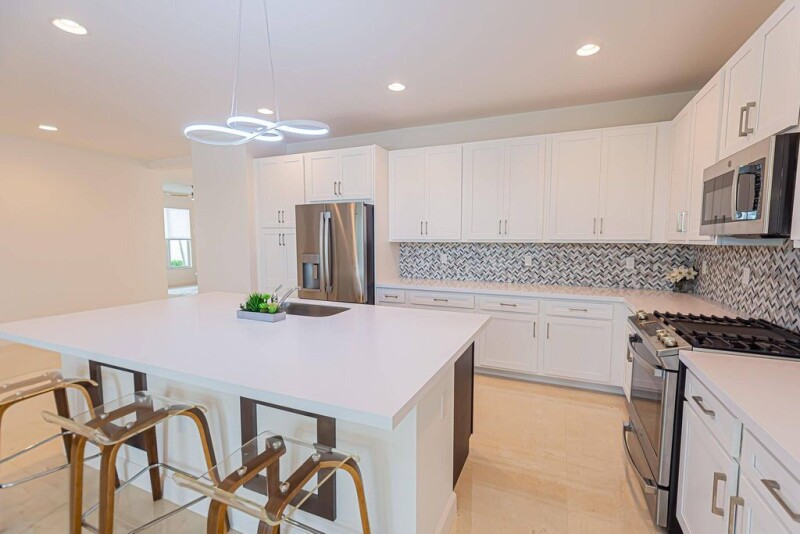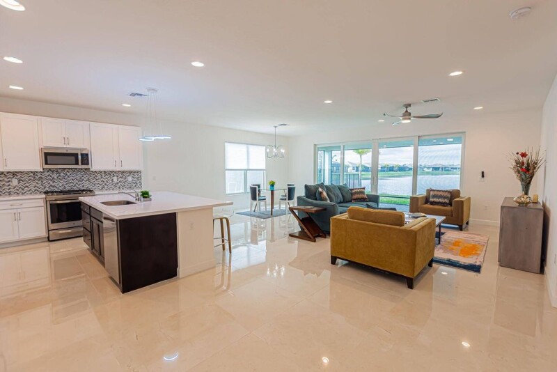 Valencia Grove, Riverland! Why Wait? Priced below GL New Construction! Move in Now! This upgraded Amalfi floor plan features 3/3/2 with 2396 under air and gorgeous 29''x29'' tile floors in most areas highlighted by high end fixtures.. Gourmet kitchen has quartz counters, plenty of upgraded 42'' wood cabinets, stainless appliances, gas cooking and work island. Separate family, living, dining area. Enjoy the long range lake views from the large covered paver lanai with picture frame screen. Plenty of activities, resort style amenities. active 55+ **SELLER OFFERS OWNER 4.5% FINANCING, NO CLOSING COSTS OR $5,000 TO BUYER CLOSING COSTS!.