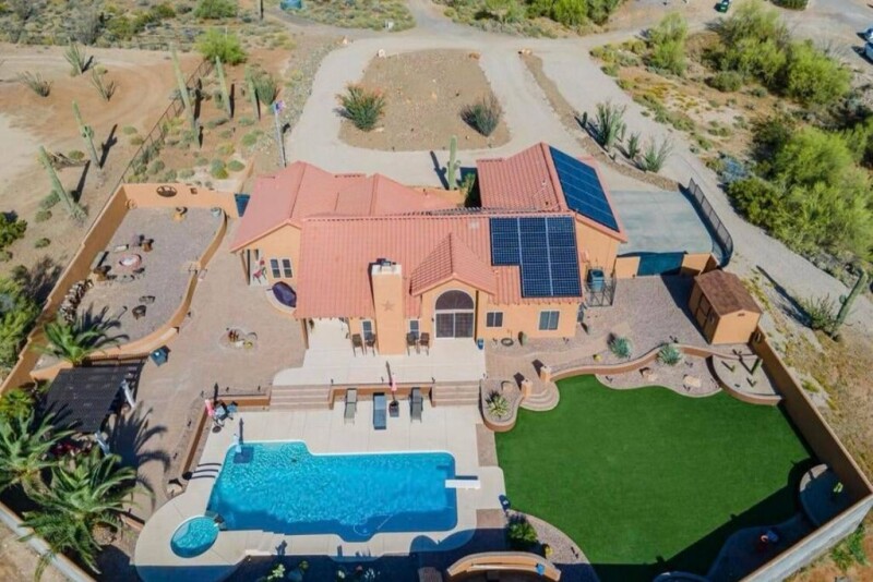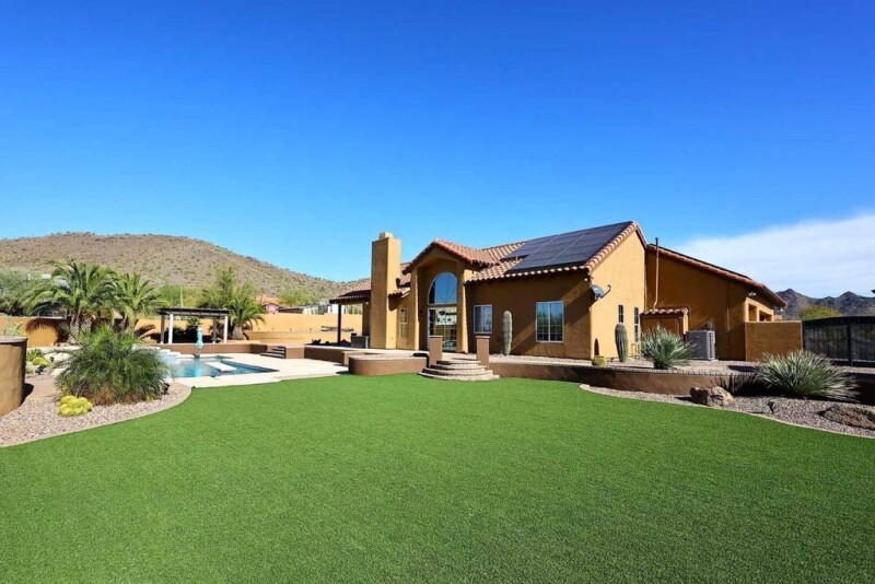 Welcome to The Sanctuary at Lasalle Heights—a one-of-a-kind energy-independent ranch estate where luxury, sustainability, and adventure blend seamlessly. Nestled on 1.25 private acres in the tranquil Desert Hills community, this exquisite 4-bedroom, 3-bath retreat is fully powered by Tesla Energy, featuring a paid-off solar array and dual Tesla battery backups to ensure reliable, off-grid power. A private, gated driveway leads you to this secluded gem, offering complete privacy and security. Surrounded by pristine state-trust land, you’ll experience unmatched peace and quiet, with miles of hiking trails right outside your doorstep—offering the ultimate outdoor lifestyle. Inside, the open and versatile floor plan is perfect for modern living and entertaining. The expansive luxury owner's retreat provides a spa-like bathroom for ultimate relaxation, while a separate mini-master suite offers an ideal multigenerational living setup with its own private entry and direct access to the beautifully landscaped grounds. The outdoor space is an entertainer’s paradise, complete with a deep dive lap pool, spa, and ample areas for family, friends, kids, and pets to gather. Enjoy cozy evenings around the firepit, or engage in friendly competition with horseshoes or cornhole. With over 10,000 square feet of open space, the possibilities are endless—build a casita, add horse facilities, or create your own custom space for boats, RVs, or motorsport toys. The breathtaking mountain views, stunning desert sunsets, and twinkling city lights in the distance elevate this property to something truly special. Ideally located in the North Valley, The Sanctuary at Lasalle Heights offers the best of both worlds—convenient access to local amenities with the sought-after serenity and natural beauty of Desert Hills living.