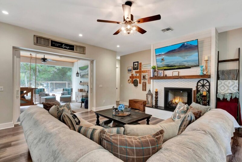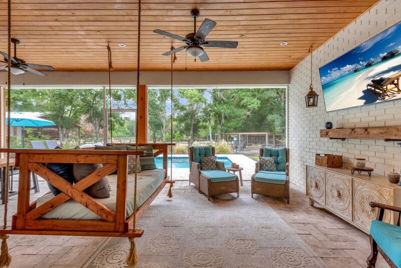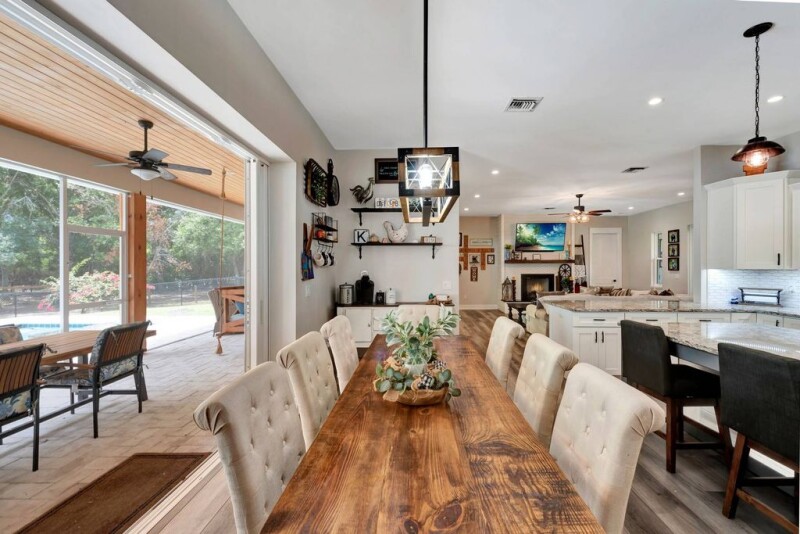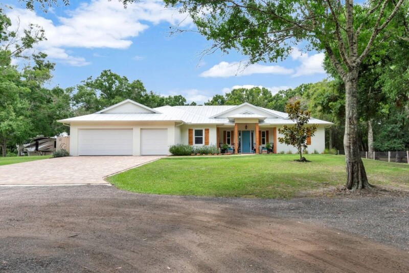 Nestled on 4.76 acres, this exquisite equestrian estate is a haven for horse enthusiasts and discerning homeowners. Meticulously crafted pole barn includes a charming 1-bedroom apartment. Concrete block construction, a 24-gauge metal roof, and complete storm protection. Gourmet kitchen, gas cooktop, GE appliances, well-designed split floorplan with 10-foot ceilings and large custom closets. Outside, a resort-style oasis featuring saltwater pool, marblescape pavers, private pond, and fire pit surrounded by swings with a movie projector under the stars. This property epitomizes comfort and style.