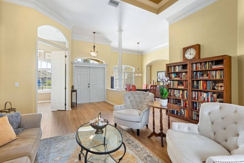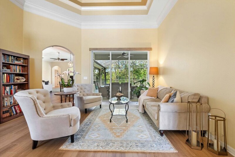 Nestled within the exclusive gated community of Trillium, this beautifully designed single-story home offers a perfect blend of privacy, elegance, and modern updates. Backing to lush PRESERVE VIEWS with Western exposure, enjoy breathtaking sunsets from the comfort of your own backyard in the back of the neighborhood where it is peaceful and quiet. This 4-bedroom, 3-bathroom features IMPACT WINDOWS and a thoughtfully designed floor plan, including a DEDICATED OFFICE with double doors conveniently located near the primary suite. The primary bedroom, expansive fourth bedroom, and both formal and main living areas all boast tranquil views of the private backyard oasis. Inside, the home showcases new, high-end natural wood luxury vinyl plank flooring, adding warmth and sophistication to the space. The open-concept design allows for effortless entertaining, while the kitchen serves as the heart of the home, overlooking the main living areas and offering both style and functionality. Step outside to the covered lanai and enclosed pool, where you can relax in complete privacy with no rear neighbors—just serene greenbelt views. A THREE AND a HALF CAR GARAGE provides ample storage and convenience. Located East of I-75 off Clark Road, Trillium offers a peaceful retreat while being just minutes from Sarasota's best shopping, dining, and top-rated schools. Experience the perfect balance of luxury, space, and tranquility in this exceptional home.