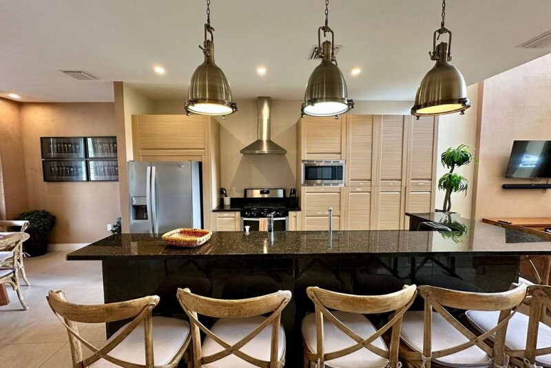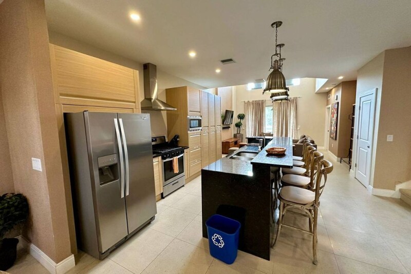 Stunning vacation home in exclusive Magic Village Resort! This gated community offers a prime location just minutes from major theme parks, shopping centers and restaurants. Ideal for families and friends vacationing together, it combines resort-style amenities with the comfort and privacy of a personal home. This elegant four-bedroom, 4.5-bath townhome boasts two primary suites, one on the ground floor and another upstairs with a private balcony, high ceilings in the living area, a fully furnished and tastefully decorated interior, and a covered lanai with an outdoor grill. Enjoy access to premium amenities, including concierge services, a 24-hour clubhouse, fitness center, kids' playroom, housekeeping and an on-site restaurant. Make unforgettable memories with loved ones and earn rental income when you're not using it. This home is an investment in fun and relaxation.