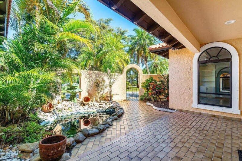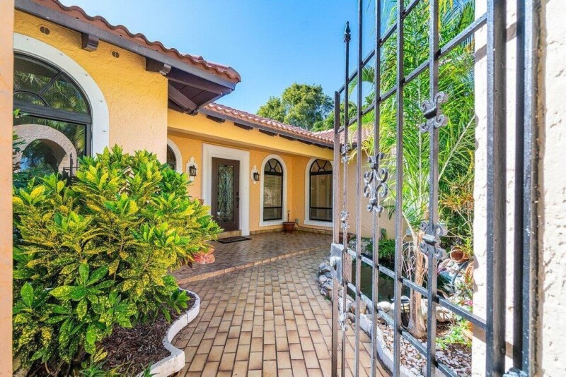 Welcome to Whispering Trails, where luxury and serenity come together in perfect harmony. This exceptional four-bedroom, three-and-a-half-bathroom pool home is situated on a premium half-acre double lakefront lot, offering breathtaking sunset views, ultimate privacy, and an unparalleled Florida lifestyle. A grand circular driveway and charming old-world courtyard entrance set the stage for this meticulously updated 3,813-square-foot single-story home. The thoughtfully designed split floor plan ensures both comfort and functionality, making it ideal for families and entertaining. The gourmet kitchen, renovated in 2021, is a chef's dream with quartz countertops, premium appliances, new Viking refrigerator, induction cooktop, and double wall ovens.