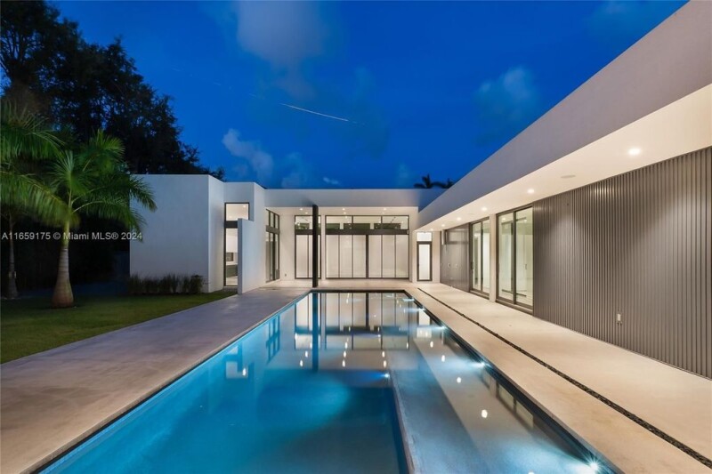 Available for immediate occupancy. Completed in 2022, this one story masterpiece with 5265 adj. sqft. sits on a 19,500 sq. ft. lot in North Coconut Grove. This estate is comprised of a Main house with 3 bedrooms plus gym, and 3.5 baths. Guest cottage has 2 rooms, plus bath, designed and wired for Home theater, plus guest suite. All Entertaining rooms have 14 Ft ceilings. 18 X 37 Great room and sep. Fam. Room overlook the 15 X 60 Ft. Lap/Spa saltwater pool. 2 room Master suite with 15 X 9 walk in closet. 4 car air-conditioned garage with 4 Tesla Power walls, 77 solar panels, 1000 gallon Propane tank, all gas chef’s kit. 3 blocks to Ransom Everglades school. Roughed in plumbing, electrical, and gas for outdoor Summer kitchen.