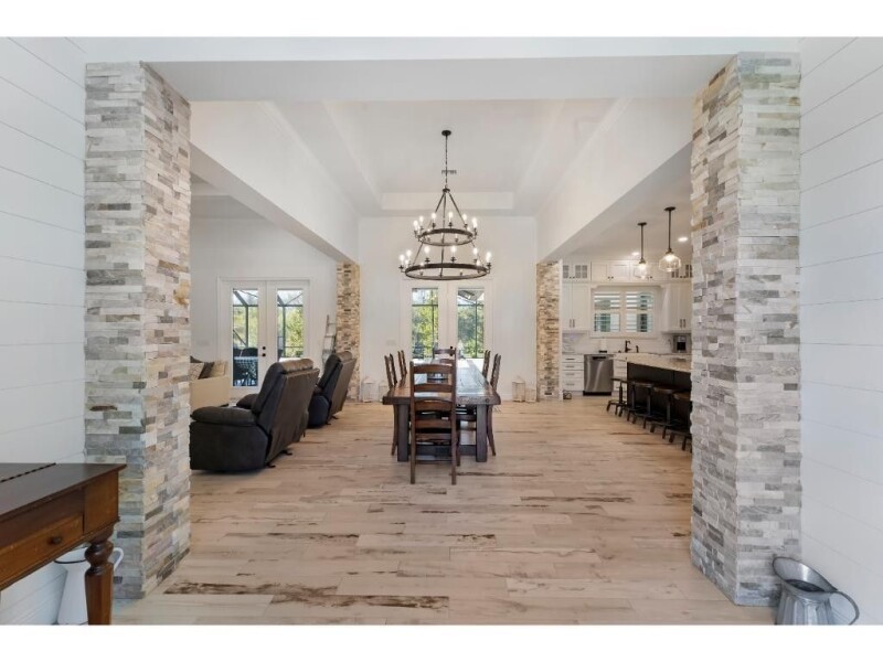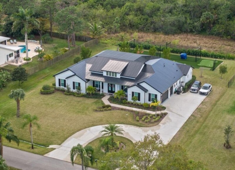 Rare opportunity to own a stunning modern home in the Evergreen/Crane Watch neighborhood! An extraordinary find awaits you in the highly sought-after Evergreen neighborhood - a nearly new CBS home on a sprawling 1-acre lot, built in 2023 with impeccable craftsmanship and no expense spared. This architectural marvel features a durable metal roof, high impact windows and doors, and an exquisite custom screened and heated pool with a large sun shelf and built-in spa. With over 3,100 square feet of luxurious living space, this showstopper offers 4 spacious bedrooms, 3 and 1/2 elegantly designed bathrooms, and a capacious 3-car garage. Every detail of this home is meticulously crafted to provide the utmost comfort and style.
