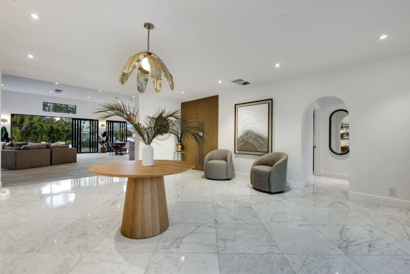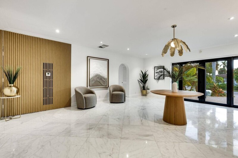 Welcome to your dream home in the highly sought-after Santa Barbara Shores! This stunning deep-water residence offers unparalleled luxury, and ocean access with no fixed bridges. A gym with plumbing, perfect for converting into an in-law suite. Great Room space with soaring 14' ceilings and an 8' tall stacking wall of sliders, 10,000 lb. boat lift ideal for boating enthusiasts. Heated pool with a saltwater system. A chef's dream, featuring Sub-Zero, Wolf, and Miele gas appliances, a built in wine fridge, and stunning waterfall marble countertops. All-Impact Glass: 2024 Aluminum/Metal Brand-new roof with strapping and added underlayment for insurance discounts and maximum durability. New PVC Plumbing: Entire home upgraded with the latest plumbing systems.
