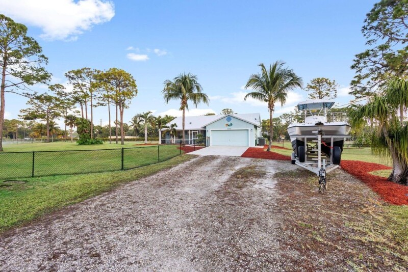 Discover your personal oasis of peace and tranquility in this remarkable home on 2.77 acres. Located at the end of a quiet street, with a corner canal border on two sides, this is the epitome of a quiet refuge; a country setting perfect for escaping the hustle and bustle of the city. Upon entering the home, you will be greeted by a lovely view of the resort-style pool. The screened-in patio area includes a wooden outdoor bar, which adds a bit of fun for pool-side soirees. This property has had one owner and is lovingly maintained. Enjoy the comfort of a split floor plan with four bedrooms and two bathrooms. The primary bedroom and bathroom feature fashionable and convenient plantation shutters, and a large walk-in closet. All other closets also include closet systems.