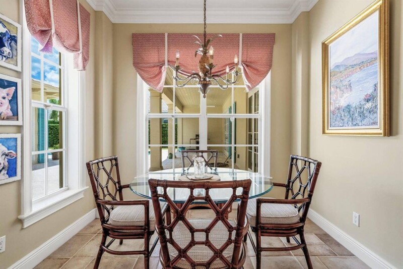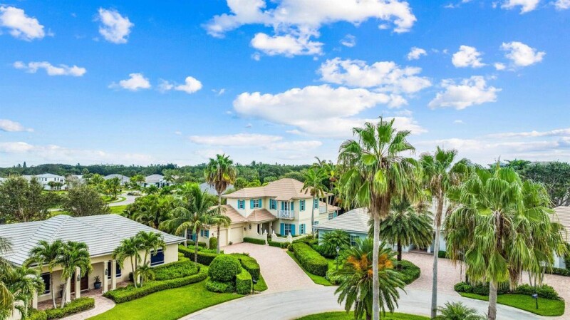 Meticulously maintained Hamilton plan traditional 3 bedroom + study on generous .38 acre super private cul-de-sac lot. Delightful SE exposure outdoor living space. Lush yard, lg heated pool/spa, covered lanais. First floor primary suite. Downstairs study with pool access bath. Updated kitchen opens to family rm. Dining rm overlooks courtyard. Living rm w/ wet bar and fireplace. Upstairs 2 en suite guest rooms open to gracious balcony. Rich detailing. Impact glass + shutters. Big laundry rm, 2 car garage. Fabulous Palm Island amenities- beach club, pier, pools, fitness. Dimensions approximate.Close.