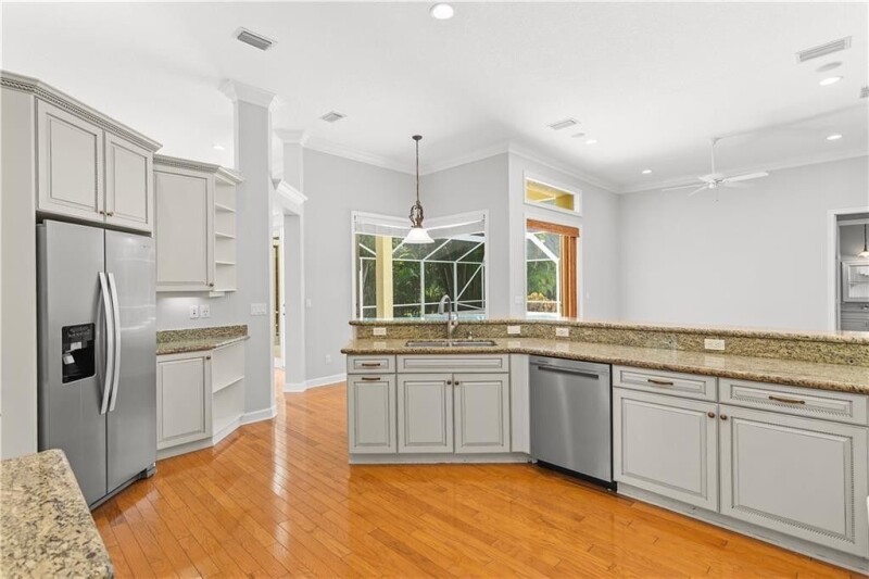 This beautiful 3,086 SQFT home features 4BED+Den, 3BA, and a second story bonus room! The kitchen boasts brand new stainless-steel appliances. Gleaming wood floors are found throughout the living areas. A Large private screened lanai and sparkling in-ground pool with spa overlooks a tranquil pond, creating an ideal setting for relaxation and entertaining. Extra-long paver driveway and 2 car garage offers plenty of parking space. Additional features include a whole house re-pipe in 2023, new interior paint in 2023 and exterior paint in 2025.