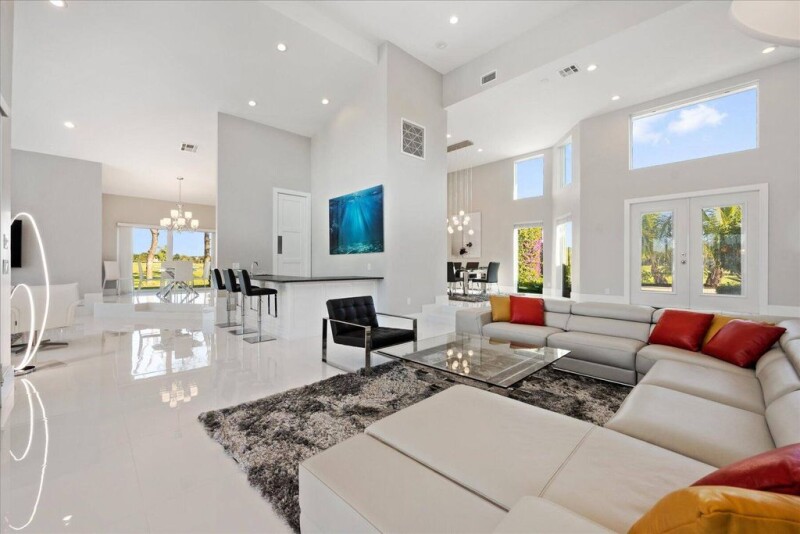 A luxurious contemporary design awaits you in this stunning 4 bedroom, 4 bath home located within the prestigious Palm Beach Polo Golf and Country Club. This property offers breathtaking views and a serene atmosphere.The open-concept layout of this home perfectly combines functionality with modern aesthetics. As you enter, you are greeted by a spacious living area that seamlessly flows into the dining room and kitchen. High ceilings and large windows allow an abundance of natural light, creating a bright and inviting ambiance. Step outside onto the expansive patio area, where you'll find a sparkling pool beckoning you to take a refreshing dip. This outdoor oasis is the perfect spot to soak up the Florida sun.