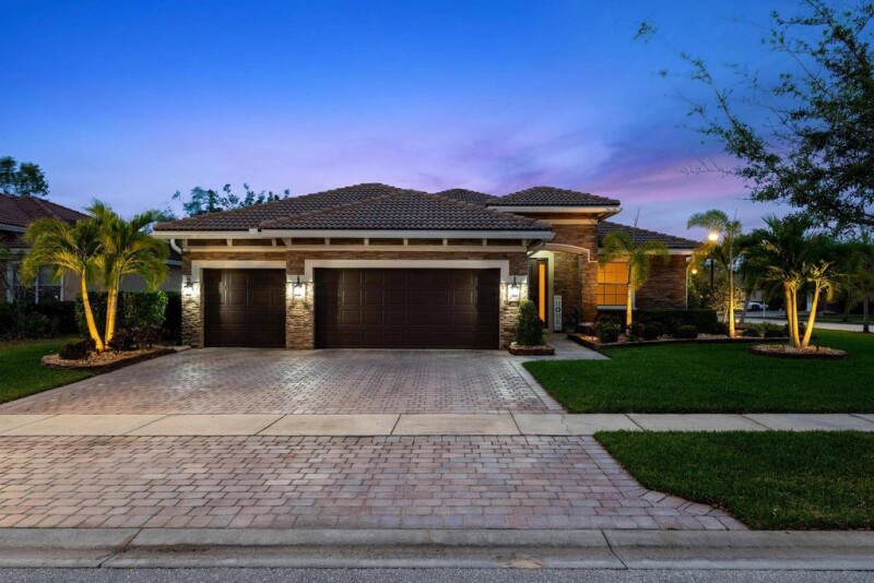 Price Improvement! This spacious 2011-built corner lot Florida home offers a perfect blend of comfort and style. The kitchen features dark wood cabinetry, granite countertops, newer appliances and a pantry with built-in shelving for optimal storage. An open-concept layout flows seamlessly through the common areas with ceramic tile flooring, while dark wood floors in all bedrooms add warmth.The spacious backyard, lined with lush Calusa hedges, provides ample room for a pool and outdoor living. A 3-car garage ensures plenty of parking and storage. Plus, enjoy the comfort of newer AC. Nestled in a Low HOA gated community. PBI Airport is 10 mins away, and short proximity to all main Highways. All ''A'' rated schools!.