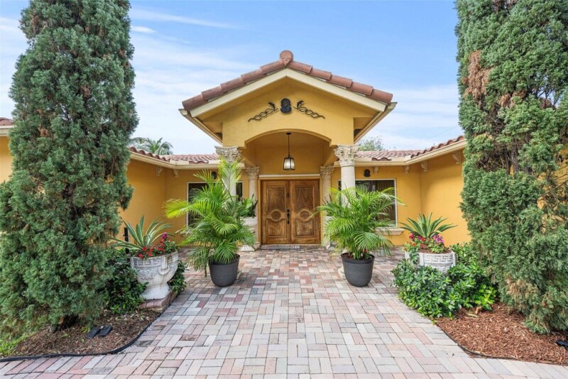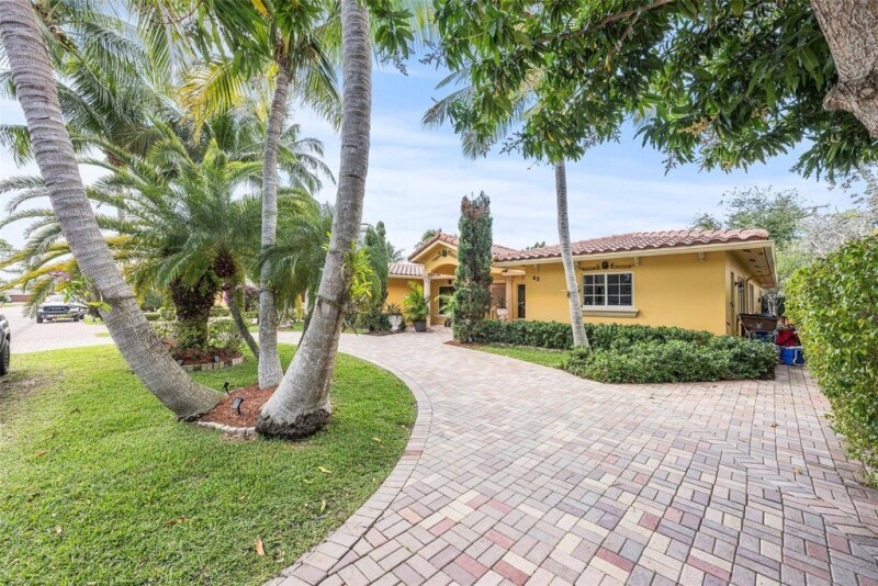 Welcome to the charming neighborhood of Pinehill Crest! Enjoy this rare opportunity to live in a highly sought after prime neighborhood in East Deerfield Beach, just minutes away from the beach and Deerfield Pier, restaurants, and shops as well as the Cove shopping plaza by the intercoastal. This beautiful home boasts 5 bedrooms & 3 baths, that sits on 10,469 sq ft. lot, 4 bedrooms are located in main house and 1 bed & 1 bath in the in-law suite with full kitchen remodeled 2021. Tile flooring throughout, master bathroom with roman tub, lots of natural lighting, wood-burning fireplace, Circular driveway, oversized courtyard with pool and new tiki hut, great for entertainment! Roof 2015, solar panels 2019, water heater 2022, 2 A/C 2020/2018, hurricane windows 2014. Welcome to your new home!.