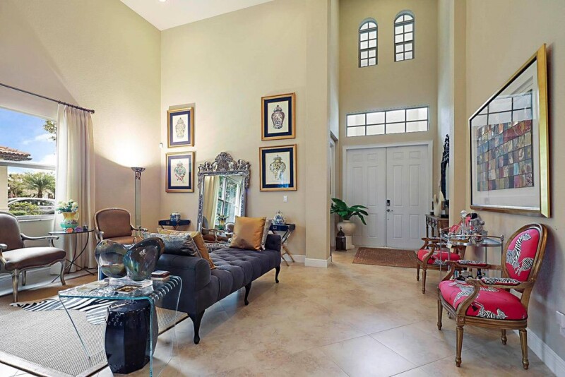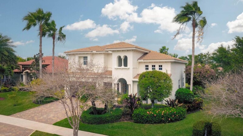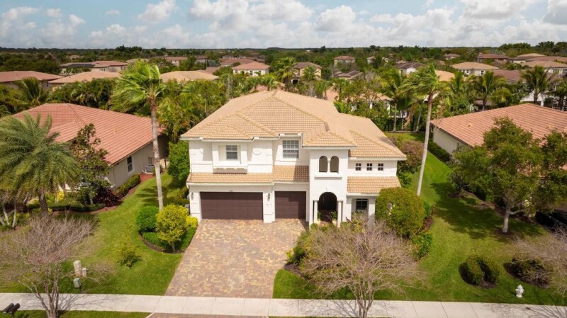 Exquisite Valenti II model in the sought after gated resort style community of Rialto. As you enter through the front doors you are visually greeted by the soaring ceilings and grand staircase. Features include the five spacious bedrooms plus a den, five full bathrooms and a three car garage, CBS construction with all hurricane rated impact windows and doors, plantation shutters in all bedrooms, a gourmet kitchen that provides abundant storage, counter space, large pantry and opens to the family room. The primary bedroom can only be described as a private retreat with approximately 450 square foot of space in just the bedroom alone, private balcony, two walk-in closets, primary bathroom with soaking tub and shower. Desirable central location in the community and a huge back yard that.