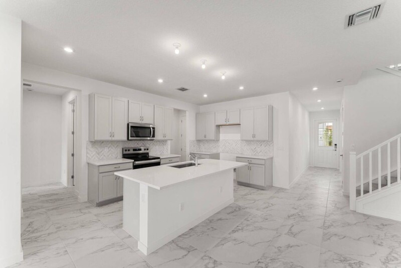 The Benton is a 2,846 sq. ft. 2-story home that offers 5 bedrooms, 3 baths and a 2-car garage. The first floor of this home features a welcoming foyer with a beautiful flex room that can be used as a game room, office or play room. The 5th bedroom located on the first floor can be used as a guest suite. The kitchen is open to the Great Room and dining room, and the covered lanai extends the living outdoors. The second floor features 3 secondary bedrooms that share a full bath with double sinks, along with the convenience of the laundry room. The owner's suite is a relaxing retreat with a private bath and a walk-in closet.