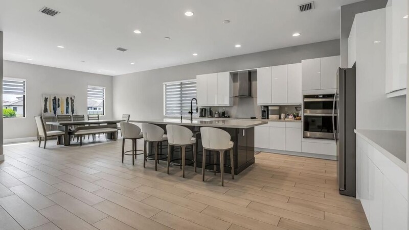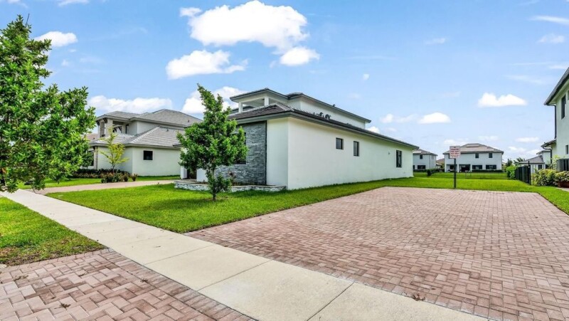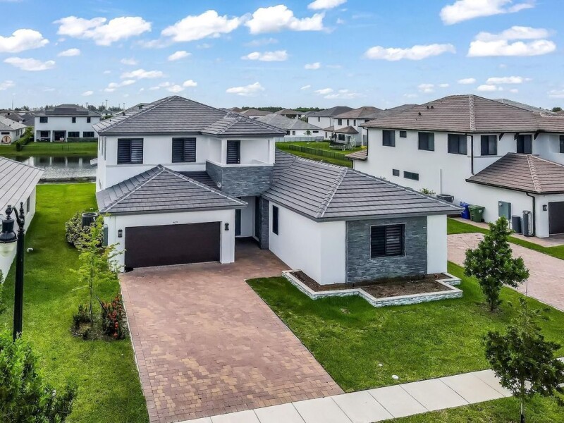 Welcome to the brand-new community of Marbella Miramar! This stunning 5 bedrooms, 4.5 bath home offers an open concept combo living, family and kitchen space that flows seamlessly with breathtaking views of the expansive lake and state-of-the-art clubhouse. The pool and deck are ideal for entertaining guests. The home features an attached in-laws quarters complete with a private living, bedroom, bath, and its own entrance. The ground floor boasts a luxurious primary suite with a separate soaking tub & shower + a massive walk-in closet. Upgrades throughout include: oversized tiles, modern, sleek custom cabinetry and features, all enhancing the brand-new construction's elegant aesthetic. Upstairs: 3 bedrooms, a loft, and bar, offering a versatility & space. Embrace a lifestyle of luxury!.
