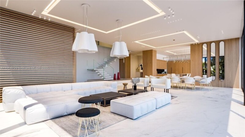 NEW BUILD ORGANIC MODERN WATERFRONT ESTATE IN THE HEART OF EASTERN SHORES! Modern Tropical Oasis in Light Natural Wood Encompassing 5 Bedrooms + 5 Baths + Powder Room in 5,796 Interior SF on 8,800 SF LOT with 80 FT of Waterfrontage. Enter into Open Floorplan with Calacatta Marble on Ground Floor. Enjoy Expansive Entertaining Spaces + Wine Cellar & Direct Water Views. Organic Wall Textures Throughout. Staircase Leads to Spacious Primary Suite Overlooking the Water. Custom Italian Kitchen Accented with Organic Light Wood with Oversized Island Countertop. Primary Bath with Hansgrohe & Duravit Fixtures + Rainshower. Deck Perfect for Entertaining with Heated Pool & Summer Kitchen. Minutes Away from Sunny Isles Beach, Aventura Mall, Dining & Oleta River State Park. Delivers Q2 of 2025.