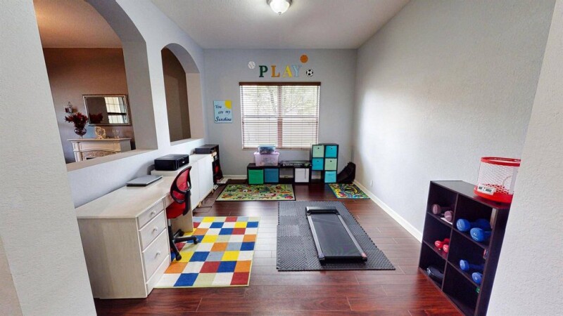 Nestled in the prestigious Highlands Reserve community, this breathtaking 5-bedroom, 4.5-bathroom home spans over 4,300 square feet, offering an exquisite blend of space, elegance, and comfort. Located in Palm City, this neighborhood is known for its top-rated, A-grade schools, making it ideal for families seeking both luxury and educational excellence. As you step inside, you'll be captivated by the soaring high ceilings that set a grand tone, opening up to a formal living and dining area perfect for entertaining. Beyond, an expansive family room awaits, seamlessly connecting to a stunning chef's kitchen, complete with a generous center island, gleaming granite countertops, and abundant 42-inch cabinetry, as well as ample space for a full table in the eat-in kitchen area.