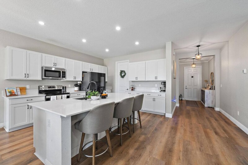 Located in the sought-after Copper Creek gated community, this spacious 5-bedroom, 4-bath home with a den and office sits on over half an acre. The open and bright floor plan features a sleek and upgraded kitchen with quartz counters, an oversized island and high-end features, including a Samsung fridge with a family hub and built-in Alexa. Luxury vinyl plank flooring is throughout, upgraded lighting, and a whole-home water treatment system. Master suite features double sinks and a massive walk in closet. The 3 car garage comes equipped with Husky steel cabinets and epoxy floors. Step outside to the huge fenced in backyard which features a 50x20 paver patio and enclosed vinyl fence for privacy and potential for pool installation. This home is a perfect blend of comfort and luxury!.
