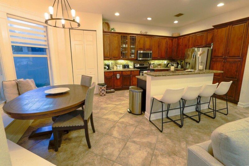 Discover the rare and highly sought-after Jasper model stunning 6-bedroom, 4-bathroom home with a bonus sitting room off the master suite. This spacious residence offers a thoughtfully designed layout, including 2 bedrooms and a full bathroom conveniently located on the first floor. Highlights include impact windows on the second floor, hurricane panels on the first floor, stainless steel appliances, and beautiful wood cabinets with panel inserts in the kitchen.Step outside to a spacious covered patio, perfect for entertaining, with ample room to add a pool and create your dream outdoor oasis.Located in the prestigious Canyon Lakes community, this home offers access to first-class amenities, including a clubhouse with a fitness center, tennis courts,.
