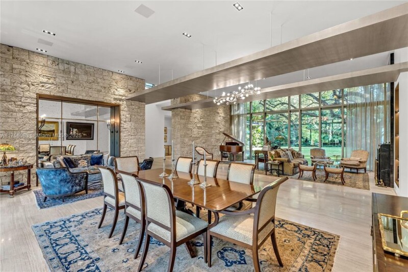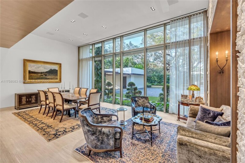 Reminiscent of the work of Richard Neutra, this Mid-Century Modern estate, designed by Taylor & Taylor & built by Coastal Construction, is located in coveted Hammock Lakes. Tucked away in a gated community, & extremely private & secure, the home is situated among countless Mature Oak trees on a full acre of land. This recently updated 2-story, 8-bedroom home features natural stone & wood floors. Elegantly & stylishly appointed by a top-flight designer, this estate is perfect for the buyer who wants to move in tomorrow. Features include a Ground Floor Primary; large living room with fireplace; oversized dining room; gourmet kitchen; spacious pool, open lawns and cabana/guest house; Smart House; an abundance of natural light throughout the day both indoors and outdoors. NO expense spared.