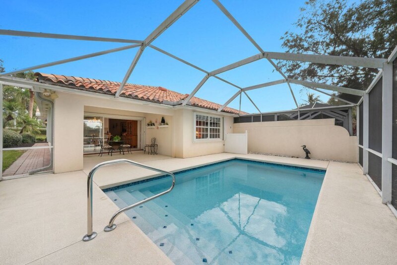 Discover the charm of this beautiful villa in the desirable Village Walk of Naples! This meticulously maintained end-unit home sits on a wide, beautifully landscaped lot with a screened-in lanai and private pool, ideal for enjoying the Florida lifestyle. Featuring three bedrooms, two baths and a two-car garage, this home boasts turnkey furnishings, a spacious living room with a built-in wall unit, and sun-drenched interiors with a southwestern exposure. This West of Interstate 75 community is just five miles from Vanderbilt Beach and minutes from Mercato's dining and shopping. Enjoy resort-style amenities including tennis, pickleball, bocce, a gym, a lap pool, heated resort pools, an on-site restaurant and miles of recreational paths.
