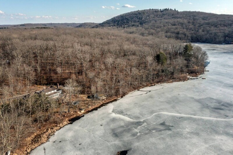 Rare waterfront oasis with 270+ feet of direct frontage on one of Connecticut's cleanest lakes. Nestled at the end of a private, wooded road, this 3-bedroom, 3.5-bath home offers stunning western sunset views and seamless indoor-outdoor living. Built in 2004 and thoughtfully renovated in 2022, the home features high-end finishes throughout. The open-concept kitchen, dining, and living space is the heart of the home, anchored by a wood-burning fireplace and French doors leading to a wraparound stone patio. The kitchen boasts a large island, soapstone sink, granite countertops, and wine fridge. A heated brick sunroom with lake views connects to the first-floor primary suite, complete with two walk-in closets, spa-like bath, soaking tub, and steam shower. A second ensuite home office on the main level offers privacy for guests. Upstairs are two additional bedrooms with lake views, a full bath, and a cozy media room/office. The lush grounds feature mature landscaping, a stone fire-pit, outdoor shower, hot tub, and private sandy beach. A revitalized boathouse/game room provides storage for watercraft, while the property's bordering protected land ensures long-term privacy. Additional highlights include a 3-car garage, full basement, whole-house generator, and central air. Conveniently located near top-rated dining, markets, and Mount Tom State Park, this home is a true lakeside retreat.