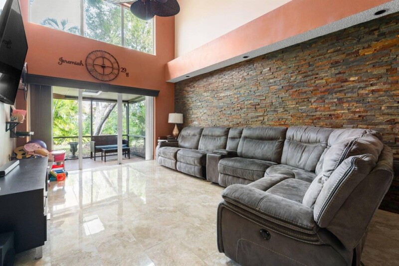 Experience luxurious living in this immaculate four-bedroom, two-and-a-half-bathroom townhouse at Fairway Views. Enjoy stunning lake views from your private one-car garage. Each room features exquisite rectified porcelain tile flooring and vaulted ceilings, creating a sophisticated ambiance. The Samsung kitchen boasts a magnificent slate accent wall and quartz countertops, adding luxury. Custom closet systems ensure ample storage. The master bedroom includes en suite amenities and a covered screened patio with accordion hurricane shutters, offering a private retreat. Fairway Views provides amenities like a clubhouse, exercise room, and pool. This fully updated, turnkey home is a must-see for anyone seeking their dream home. Don't miss out on this incredible opportunity.