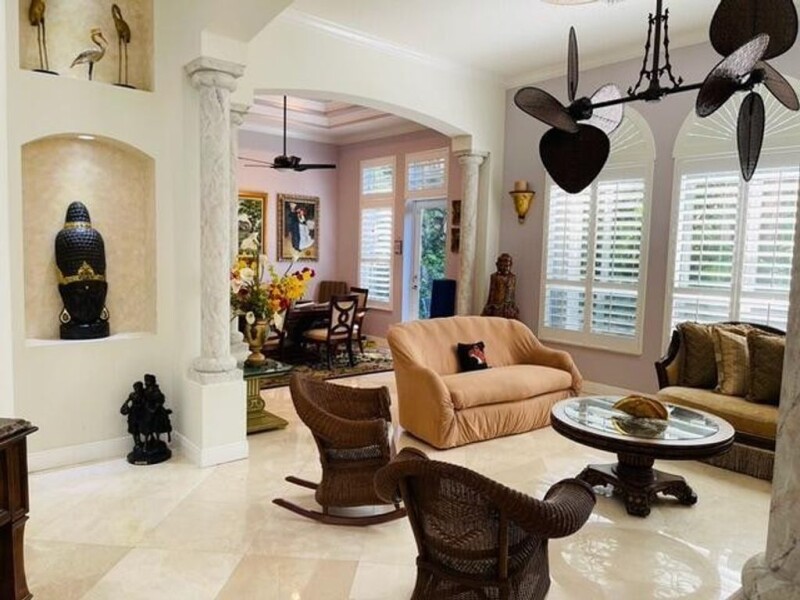 Magnificent Courtyard Style 4 Bedrooms, 4 1/2 Bathrooms. It features high ceilings, an oversized pool in a screened private patio, a backyard with artificial grass and a monkey bar installed. The home has a brand new roof, marble floors, upgraded kitchen with stainless steel appliances, a butlers area with a wine cooler, alarm system, impact windows, plantation shutters, large plantation fans, central vac, a laundry room with washer and dryer machines for small and large loads, 3 car garage plus a Tesla Wall Charger Gen 3, 48 Amps OEM. The spacious master bedroom has 2 walking closets and an oversized bath with dual sinks, dual vanities, shower, jacuzzi, a private toilet room and a door that connects directly to the pool area. Each bedroom has a private bathroom. See Addition Remarks.