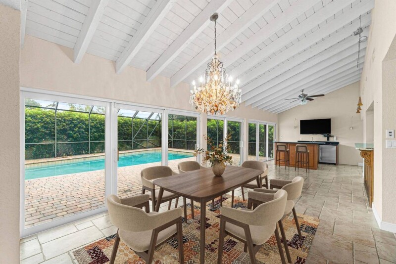 As you step inside you are greeted by the grandeur of vaulted ceilings adorned with beautiful wood beams, creating a warm and inviting canvas to create your dream home. The spacious kitchen is a culinary enthusiast's dream. Equipped with top-of-the-line appliances, including a Sub-Zero refrigerator and a large island that serves as the focal point. A convenient wet bar adds an extra touch of sophistication, making this space perfect for entertaining guests or enjoying intimate family gatherings. This outdoor sanctuary is an extension of the living space featuring the large screened-in patio with pool and hot tub. Home also has a brand new full house generator and Tesla plug-in.