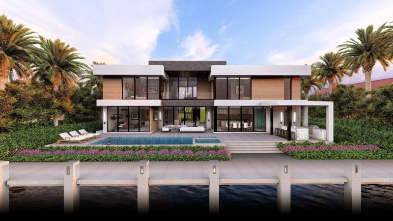 NEW CONSTRUCTION!! Super modern deep water 2 story estate. In prestigious Coral Ridge with deepwater access. Dramatic entry, 22 ft ceiling, floating staircase and open-concept great room. 3+ car air-conditioned garage with room for car lifts, gym, 1st floor chef's kitchen, club room with full bar, VIP suite, wine cellar, fireplace, commercial elevator. 2nd floor, ultra-luxurious primary suite, separate spa baths & closets, plus large flexible bonus room/bedroom. Upstairs and downstairs laundry rooms. Resort-style heated pool with spa, summer kitchen pavilion with bar seating. New concrete 100’ dock with 200 amps of power. Minutes to local dining, shopping, the beaches and in the Bayview elementary school district. Ready late 2025! All Measurements Are Approx.