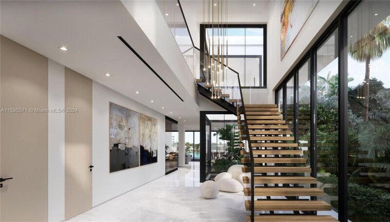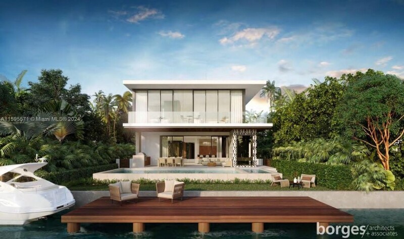 Incredible opportunity build your near 5,000 sq foot dream home, with five bedroom and five bath on this sprawling 10,000+ sq foot lot with over 53 foot of prime waterfront offering Biscayne Bay and ocean access. The residence blends contemporary elegance with seamless indoor-outdoor living, offering a serene retreat just moments from Miami Beach’s vibrant energy. Expansive terraces, a resort-style infinity pool surrounded by lush landscaping, and private dock. Nestled in coveted mid beach Nautilus neighborhood, close proximity to top-rated schools, fine dining, shopping. Newly completed seawall, and included in the sale approved and permitted plans that are worth $350,000 from the famed architect Reinaldo Borges, that also saves you a year time permitting time. Photos are renderings only.