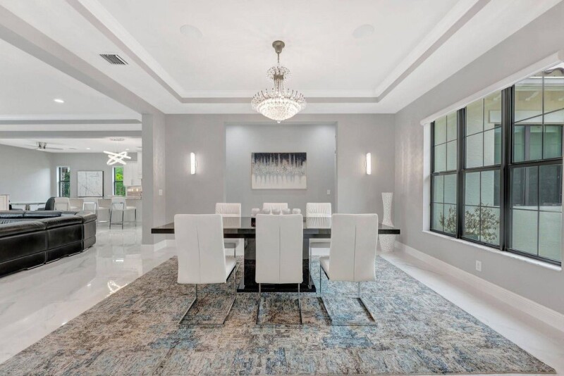 Set on an oversized 16,269 square foot lot, this stunning home offers exceptional privacy and exudes refined elegance. The main floor features the master suite along with two additional spacious suites. The dine-in chef’s kitchen is perfect for entertaining, seamlessly opening to a breakfast nook and a large family room. This open-concept kitchen boasts an oversized quartz center island, beautiful white cabinets, a large custom pantry, and top-of-the-line appliances. Upstairs, you'll find three more bedrooms and an impressive soundproof theater room. Each bedroom is equipped with its own ensuite bathroom, enhancing the home's luxurious appeal. The expansive, fenced backyard offers plenty of play space, an outdoor kitchen, and breathtaking lake views!.
