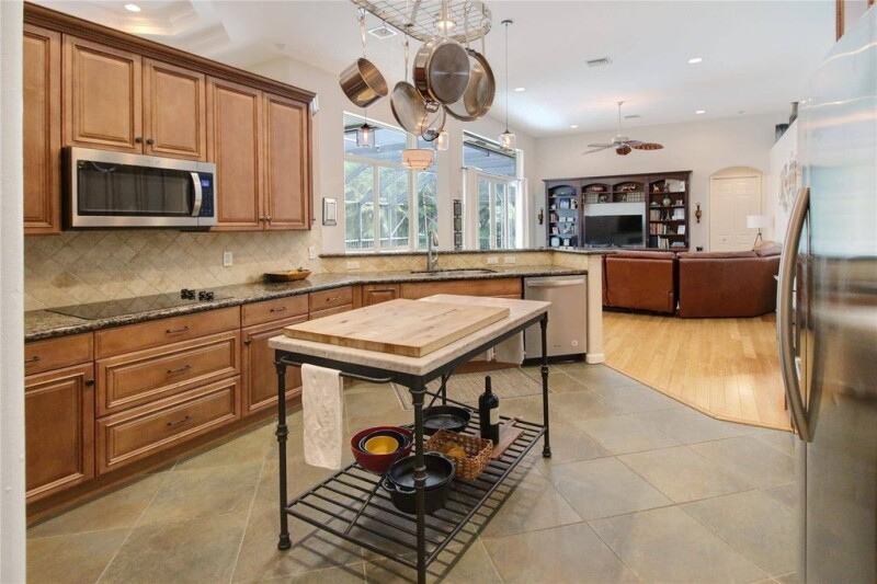 PRESTIGIOUS NEIGHBORHOOD OF PLANTATION ACRES - 5 Bed / 3 Bath home boasting OVER 3,400 TOTAL SQFT, IMPACT WINDOWS & DOORS installed 2023, 12' VOLUME CEILINGS, a lush + serene SCREENED POOL + JACUZZI area with tons of privacy, 3-car garage, GORGEOUS REAL HARD WOOD BAMBOO FLOORS + HUGE MASTER SUITE w/ double walk-in closets, an OVERSIZED DOUBLE SHOWER w/ 2 shower heads + large tub. You will love this GOURMET CHEFS KITCHEN with all wood cabinetry, DOUBLE OVEN, quick boil stove, wine refrigerator, GRANITE COUNTER TOPS, movable island + NEWER STAINLESS STEEL APPLIANCES. Laundry Room inside. Each bedroom comes ready w/ custom closet fittings. Close to all shopping and schools, 2 parks, plus Greenway. GREAT SCHOOLS nearby!.