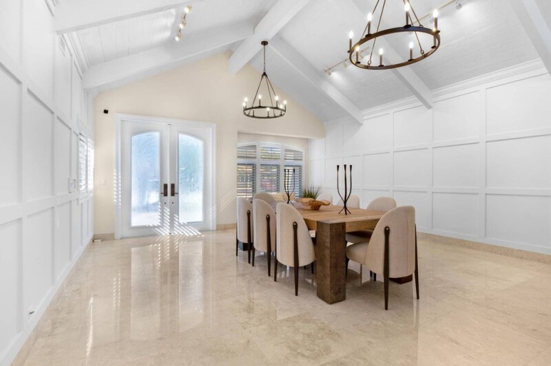 Rarely available stunning waterfront home TOTALLY REDESIGNED W/ VAULTED CEILINGS & WOW FACTOR in acclaimed Cypress Lake. ROOF 2019. IMPACT. 3AC's. 24'' Crema Marfil Marble Flooring. Spacious OPEN CONCEPT 3-bedroom 2 bath plus a versatile den/office that may serve as a 4th bedroom. This uniquely designed open layout home features a vaulted wood ceiling entryway with custom Wainscoting! Enjoy the many sophisticated interior elements including a newly updated kitchen with lots of storage, glass door cabinets, and wrap around island to dining room/bar. Upgraded kitchen/bar includes Scotsman gourmet icemaker, beverage cooler, Wolf 36'' Contemporary Gas Cooktop, Bosch dishwasher, Double Oven, Warming Drawer, Deep/Wide SS Farmhouse Sink. The SURPRISE is A SECOND ISLAND w/pendant lighting, snack.