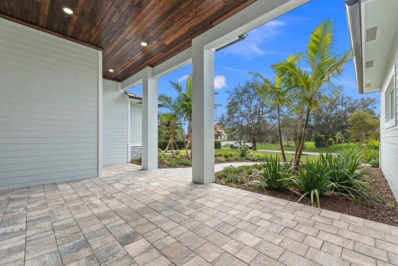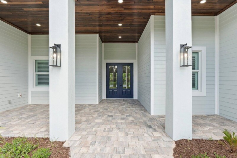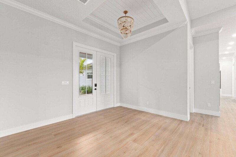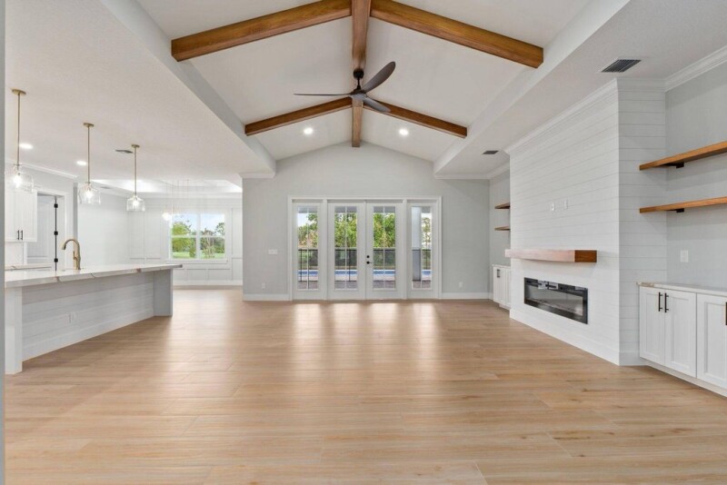 This stunning 2025 custom-built pool home presented by Southern Coastal Construction, offers 4 spacious bedrooms & 4 bathrooms, all within 3,393 sq ft of thoughtfully designed living space. Positioned on a generous, 1/2 acre Golf course lot at the end of a cul-de-sac, this residence showcases high ceilings with exquisite custom woodwork, providing a warm touch throughout. The impressive primary suite, features 2 walk-in closets equipped with custom closet systems & a dedicated dressing room, ensuring ample storage & a touch of luxury. The stunning kitchen & family room serve as the heart of the home, featuring a 10-foot island, solid wood cabinetry, & stunning quartz countertops, complemented by top-of-the-line luxury appliances.