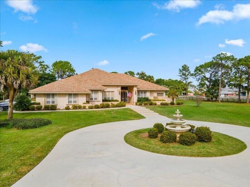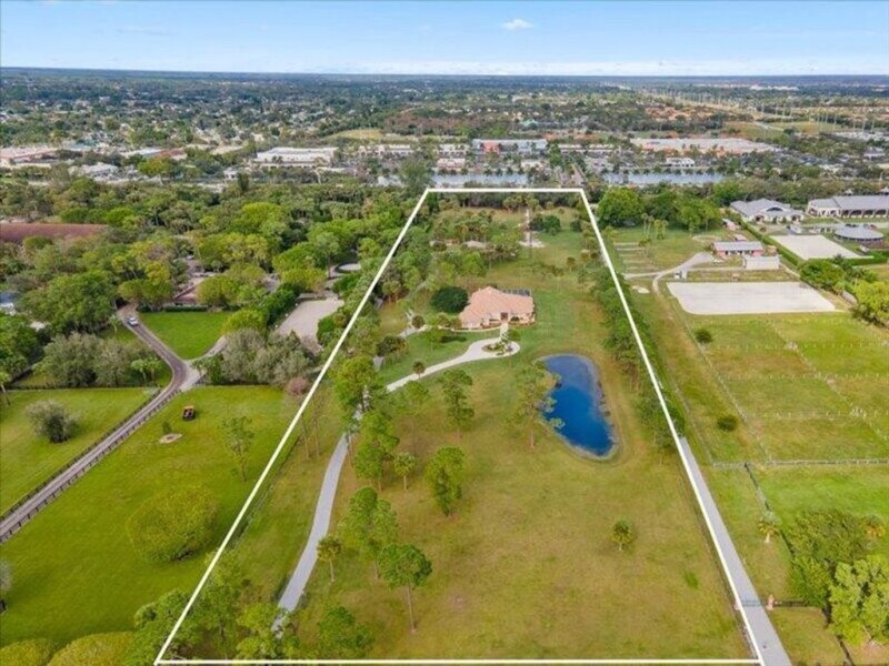 Stunning equestrian estate right in the heart of Wellington's number one dressage community! Surrounded by world class dressage facilities, this 9 acre property offers a spacious 4 BR / 3.5 BA home with high vaulted ceilings, fireplace, large covered and screened patio and pool with spa. The 4 stall barn has a tack room, storage area and wash rack. There are 3 large paddocks with mature shade trees, three-board fencing and run-ins. Adjacent to the barn is a 2 BR / 1 BA apartment with a living room, kitchen, patio and workshop. Little Ranches is an equestrian community close to shopping, restaurants, all Wellington equestrian venues and PBIA airport. Plenty of room for a covered arena!.