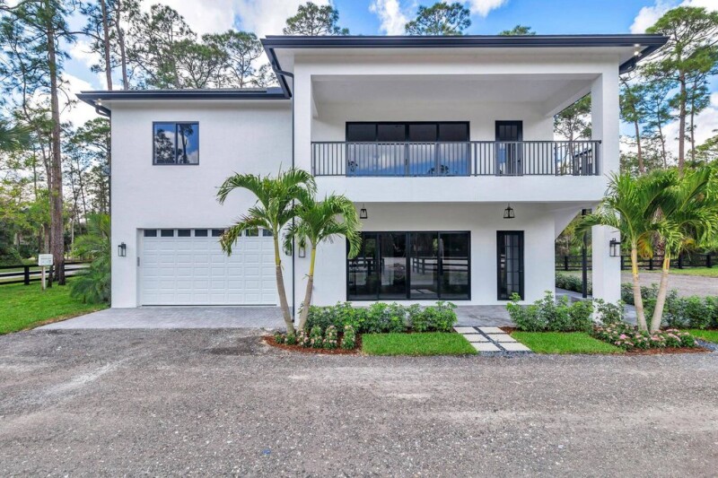 Beautiful New Construction equestrian property seated on over 2 acres located in the heart of Wellington. Featuring a 4 bedroom/3 bath caretaker residence with 3,600+sqft under roof, complete impact windows and doors throughout. The barn offers 9 stalls with brand-new stall fronts, equipped with a half bath, an A/C room that can be a tack room, office, or small grooms apartment. Adjacent to the vacant room is a barn storage room which can have a shower if desired. Directly outside the barn offers three 40x60 grassy paddocks with new fencing. The new 100x200 arena features an irrigation system. The barn is agricultural exempt and the property can have up to 12 stalls. Temporary tents are also allowed with permits.