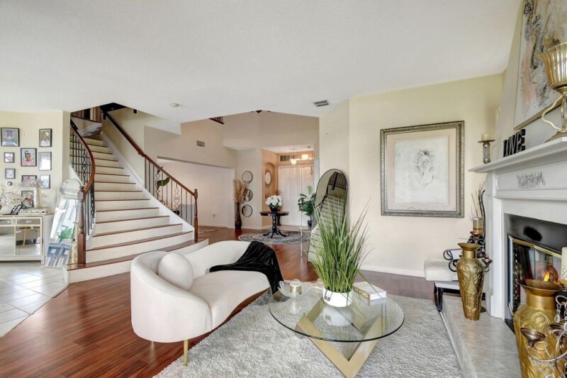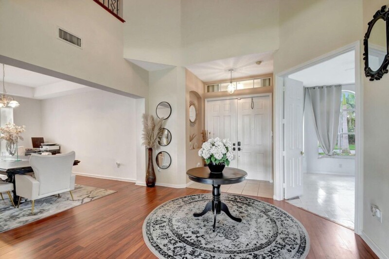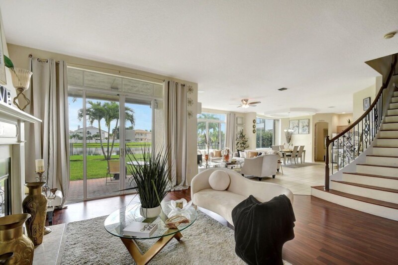 Nestled within the embrace of a tropical paradise in Florida, this Mediterranean-inspired residence stands as a regal testament to luxury living. Set against the backdrop of towering Royal palm trees and surrounded by the tranquil expanse of a large lake, this 5-bedroom, 6.5-bathroom haven is a sanctuary of elegance and comfort. Approaching the residence, you are welcomed by the lush greenery of the cul-de-sac, providing a sense of exclusivity and privacy. The tall foyer, graced by the gentle rustle of palm leaves, sets the stage for the grandeur that awaits within. Two majestic stairways flank the entrance, guiding you to the second floor with a symphony of architectural splendor. The heart of this home lies in its thoughtful design, offering a seamless fusion of indoor and outd.