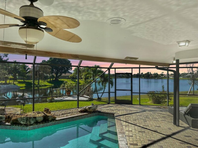 Gorgeous one-of-a-kind home with a stunning panoramic view of Lake Wellington. This home offers Florida living at its finest. The back yard is protected by a sturdy sea wall. Steps lead down to a floating dock to accommodate a boat. An observation deck is perfectly positioned to enjoy the incredible lake sunsets. The salt water chlorinated pool is fully screened-in; ideal for entertaining while your guests enjoy the incredible water views. In addition, there is a whole-house generator with a 750-gallon propane underground tank. The small, intimate, gated community is a plus. Don't miss this one! Ac 2017, Roof 2015.