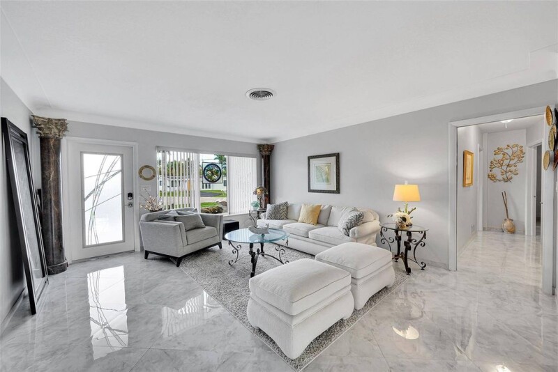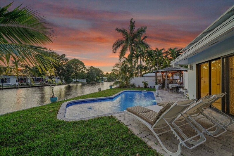 Nestled along 65 feet of the New River, this impeccably updated 3-bedroom, 3-bathroom home offers a perfect blend of luxury and comfort. With just under 2,754 sq. ft living area, the spacious open floorplan is adorned with sleek porcelain tile flooring. 2 bedrooms boasts an en-suite bath and all have a separate sitting room, ideal for in-law suites or multi-generational living. The renovated chef’s kitchen, complete with gas stoves, is a culinary dream. A 1,000-gallon propane tank fuels the stove, water heater & dryer. Outside, a beautiful backyard on the water features a gazebo, outdoor shower, and custom NEW pool—perfect for enjoying breathtaking sunsets. Hurricane-rated windows, energy-efficient solar panels, one-car garage, and a security system complete this waterfront gem!.
